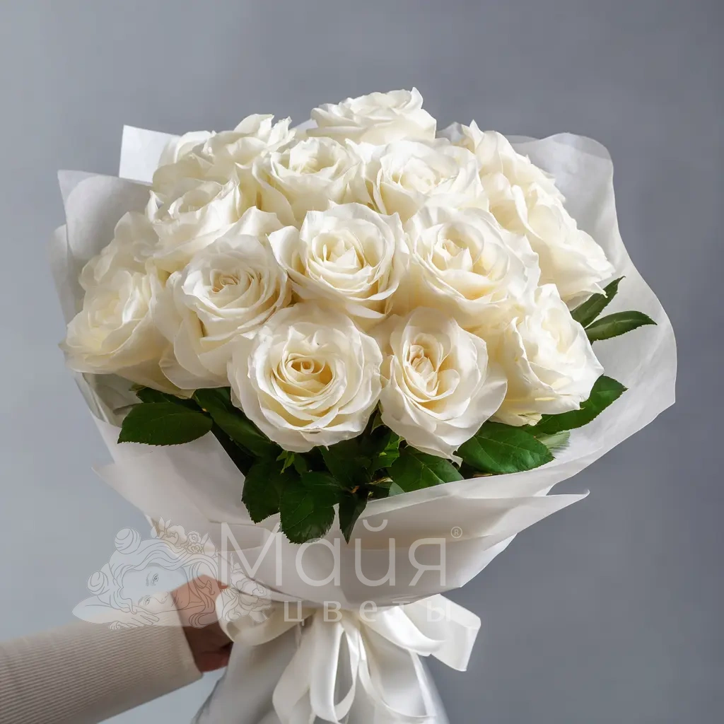 Изысканный букет из белых роз, словно пропитанный молочной мягкостью. Идеален для признания в уважении, благодарности или для подарка на утро свадьбы. Белые розы подчеркивают чистоту и деликатность момента.