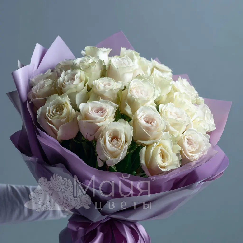 Мягкий и тёплый букет, навеянный атмосферой вечернего покоя. Белые розы создают уютное и гармоничное настроение. Идеален для романтического жеста или признательности.