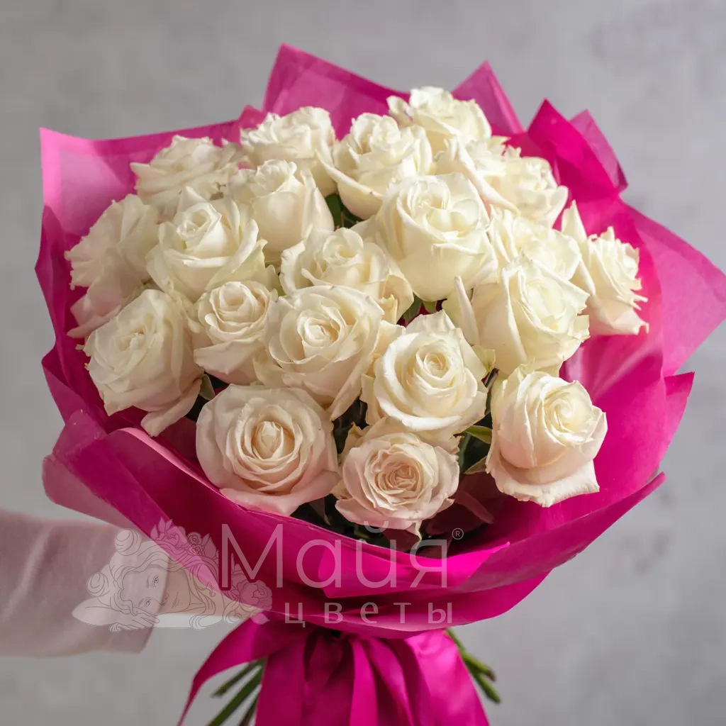 Композиция, отражающая искренность, нежность и заботу. Белые розы в этом букете говорят без слов — о чувствах, которые не нуждаются в объяснении. Универсальный выбор для самых разных поводов.