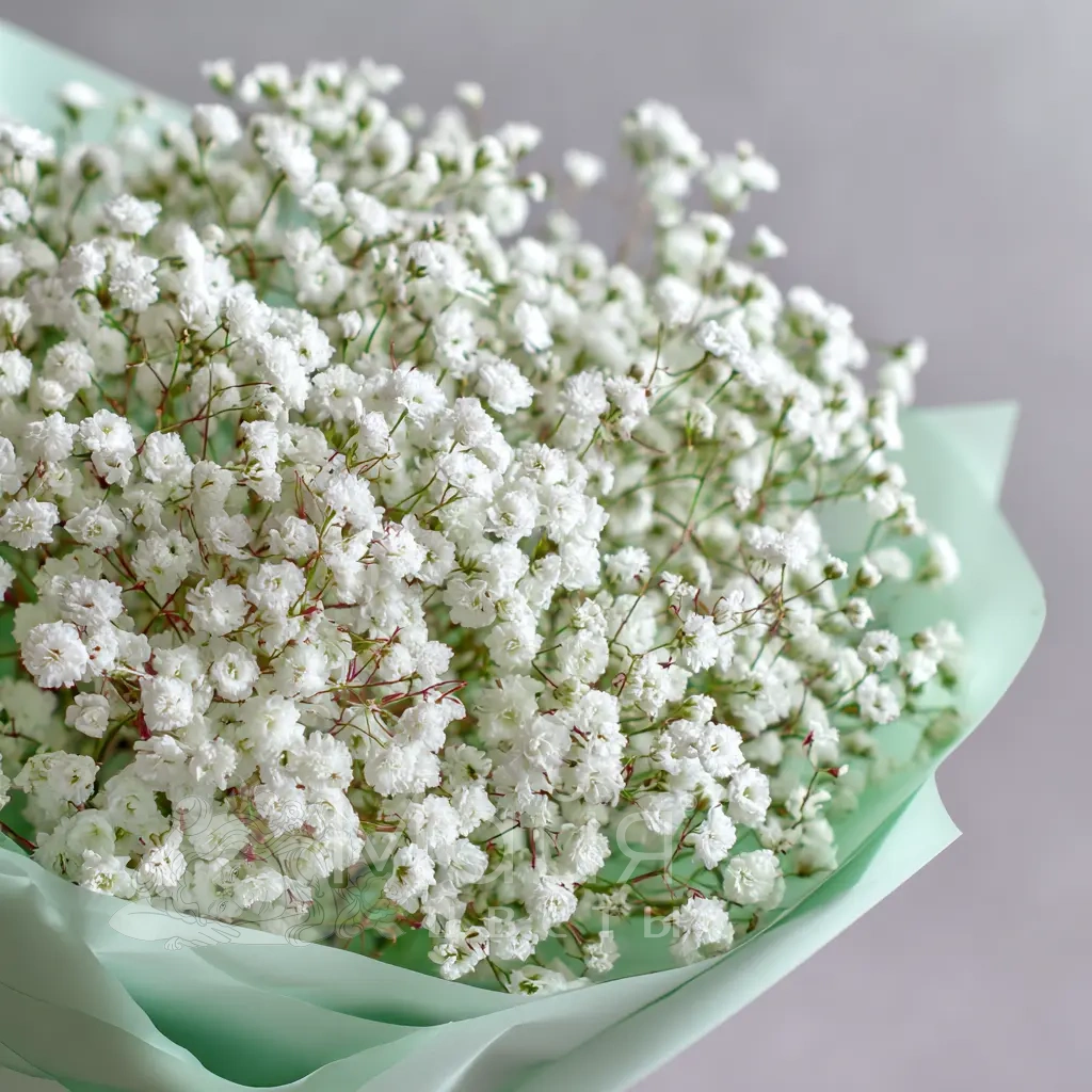 ГлавнаяКаталогБукетыМонобукет из гипсофилы «Молочная вуаль»