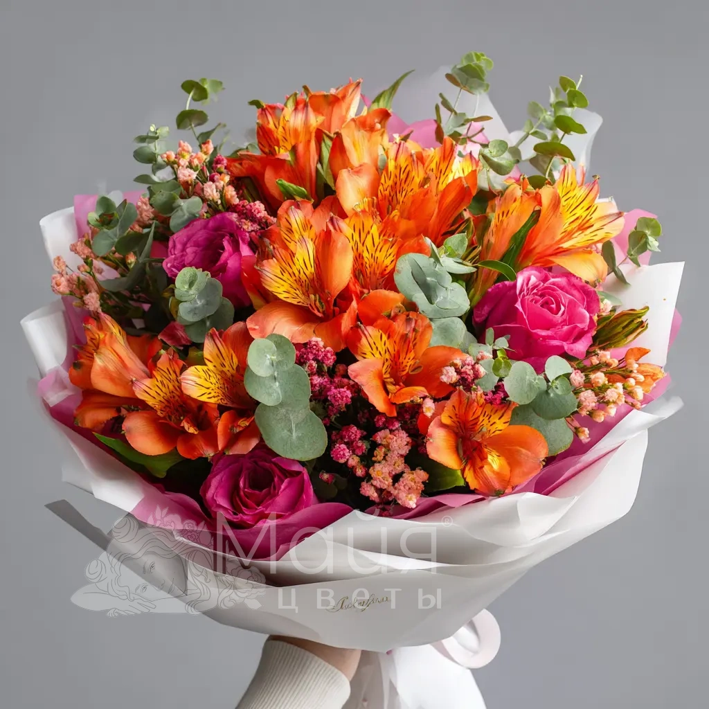 Энергичный букет с контрастными оттенками — для людей с активной жизненной позицией. Альстромерии создают праздничное настроение и передают импульс радости. Подходит для коллег, друзей, преподавателей.