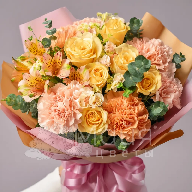 ГлавнаяКаталогБукетыБукет с гвоздиками «Солнечный закат»