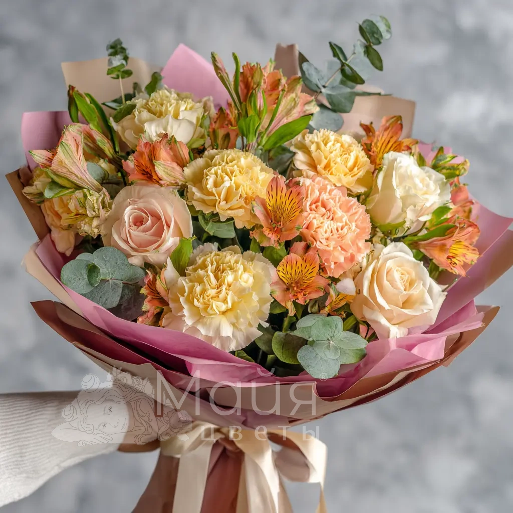 Бережная доставка прямо в руки. Вышлем фото готового букета до доставки, сделаем фото с получателем (если получатель не против).
