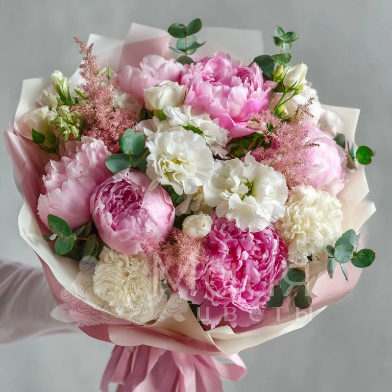 ГлавнаяКаталогБукетыБукет с пионами «Пудровая нега»