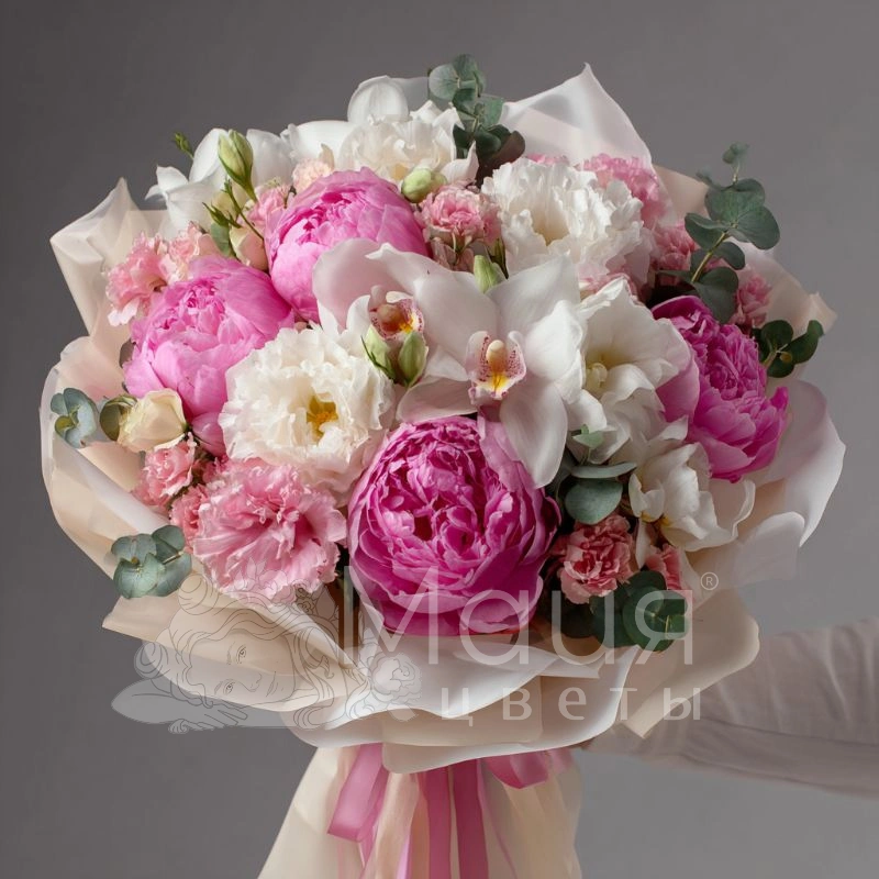 Букет с пионами «Перламутровая вуаль»