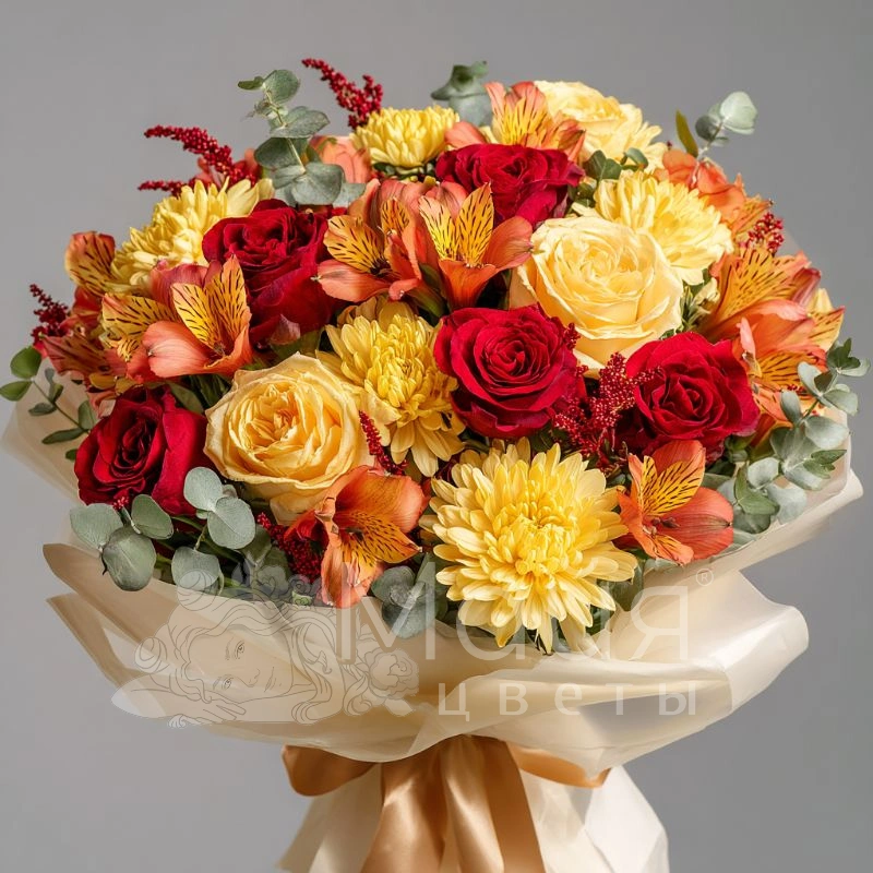 Букет с хризантемами «Огни сентября»