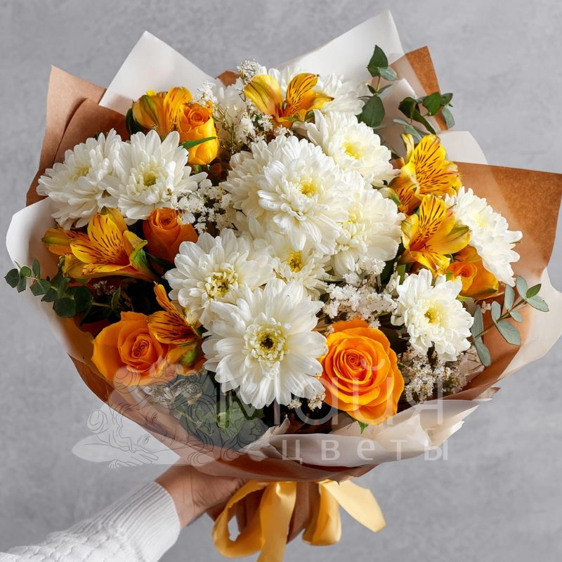 ГлавнаяКаталогБукетыБукет с хризантемами «Симфония сентября»