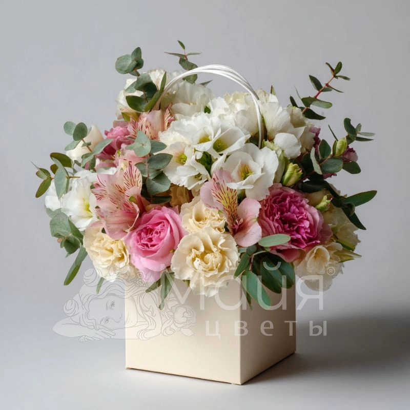 Французский шарм и нотки флористической романтики. Композиция изысканная и очаровательная — отличный вариант для утончённого подарка.