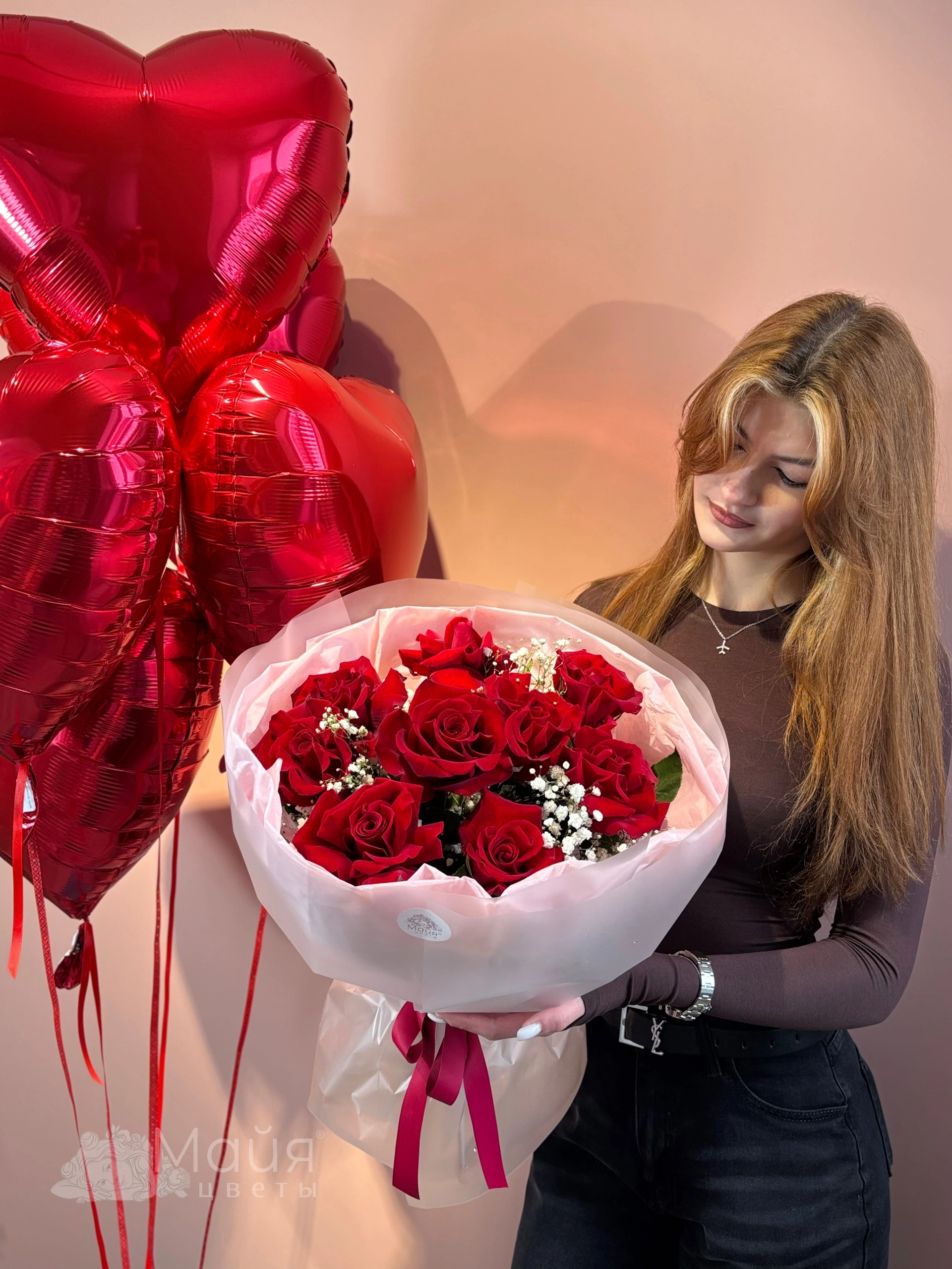 Бережная доставка прямо в руки. Вышлем фото готового букета до доставки, сделаем фото с получателем (если получатель не против).