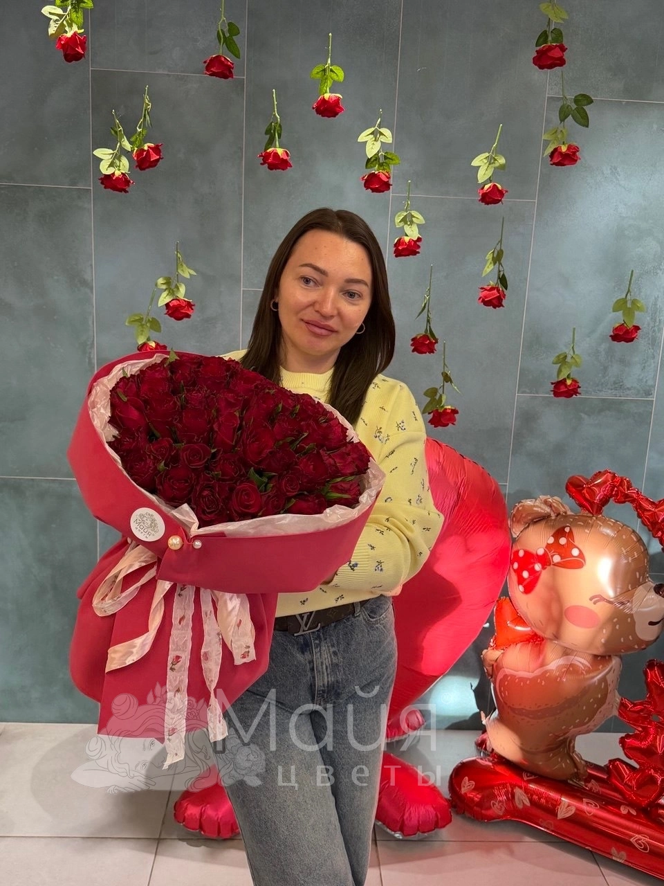 ГлавнаяКаталогБукетыVIP букетыБукет из 51 розы 40 см