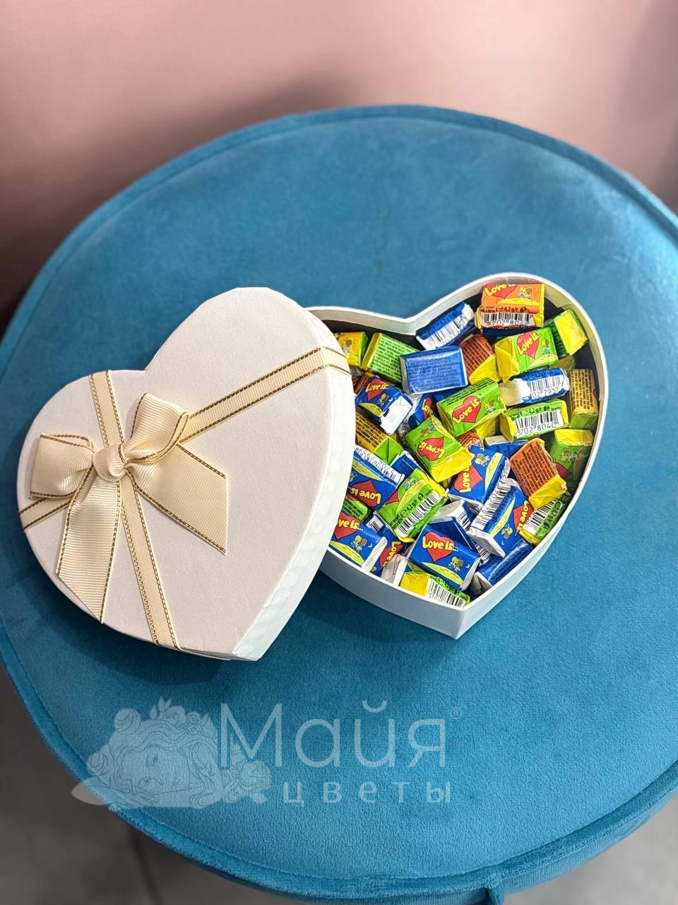 Жвачки Love is 100 шт, Короб сердце 20 см