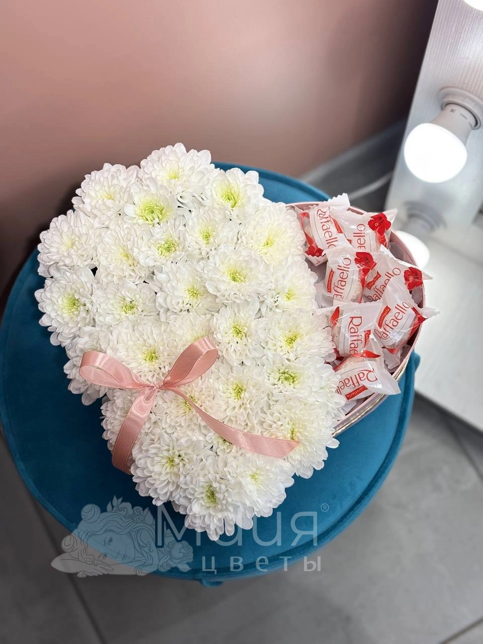 Хризантема кустовая, Конфеты шоколадные "Raffaello", Пиафлор, Лента