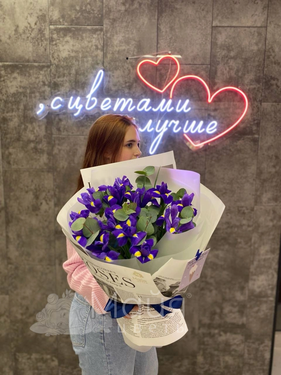 ГлавнаяКаталогБукетыБукет из ирисов и эвкалипта
