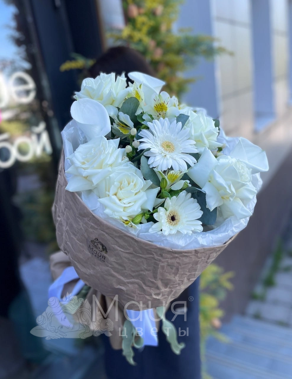 Бережная доставка прямо в руки. Вышлем фото готового букета до доставки, сделаем фото с получателем (если получатель не против).