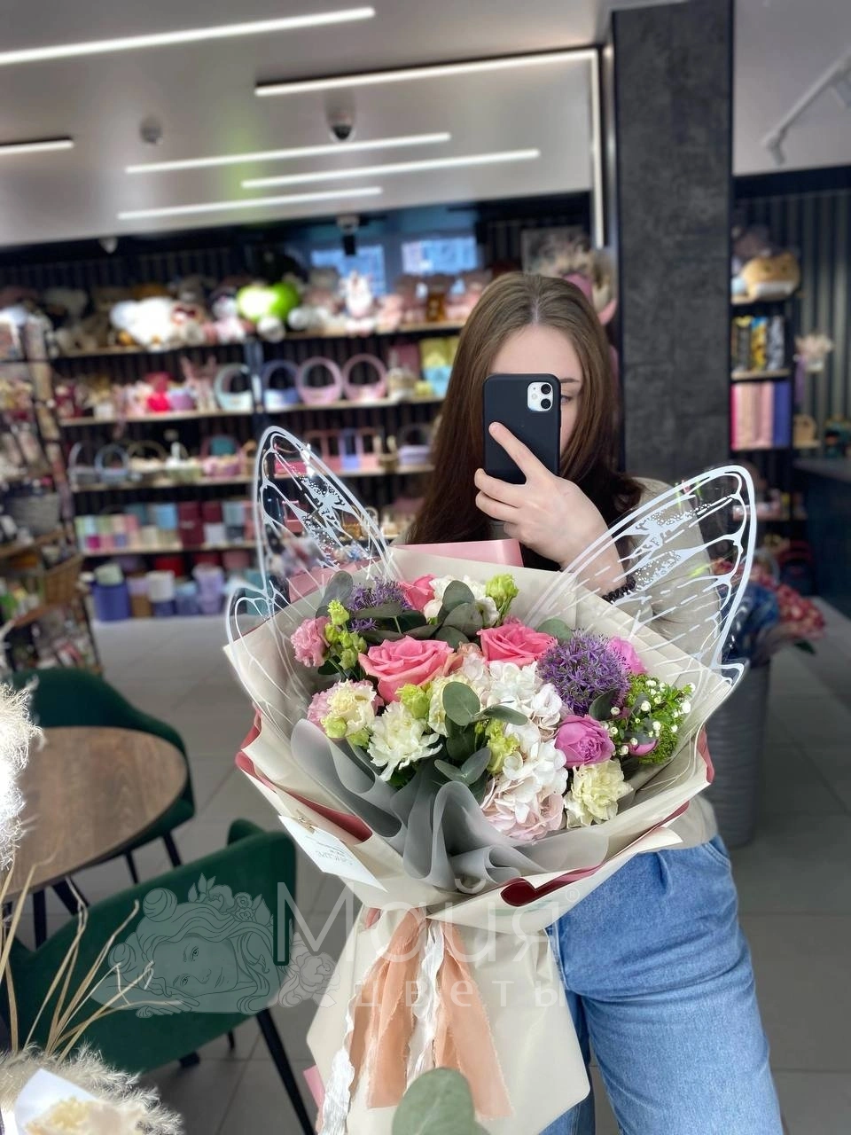 Бережная доставка прямо в руки. Вышлем фото готового букета до доставки, сделаем фото с получателем (если получатель не против).
