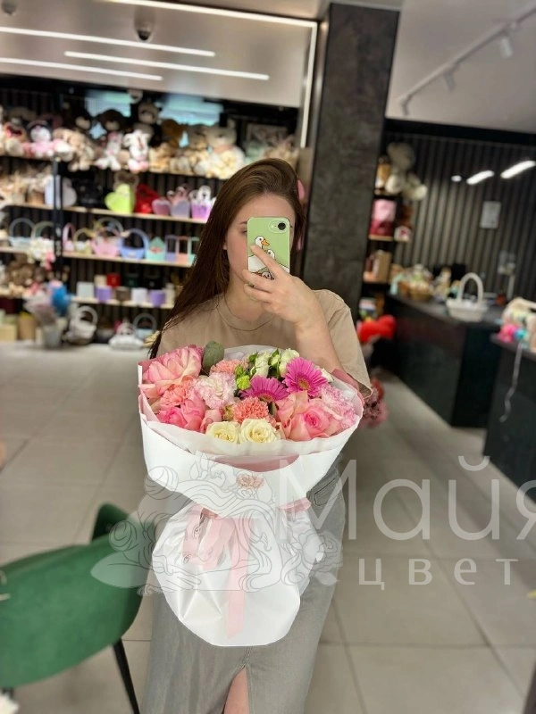 Бережная доставка прямо в руки. Вышлем фото готового букета до доставки, сделаем фото с получателем (если получатель не против).