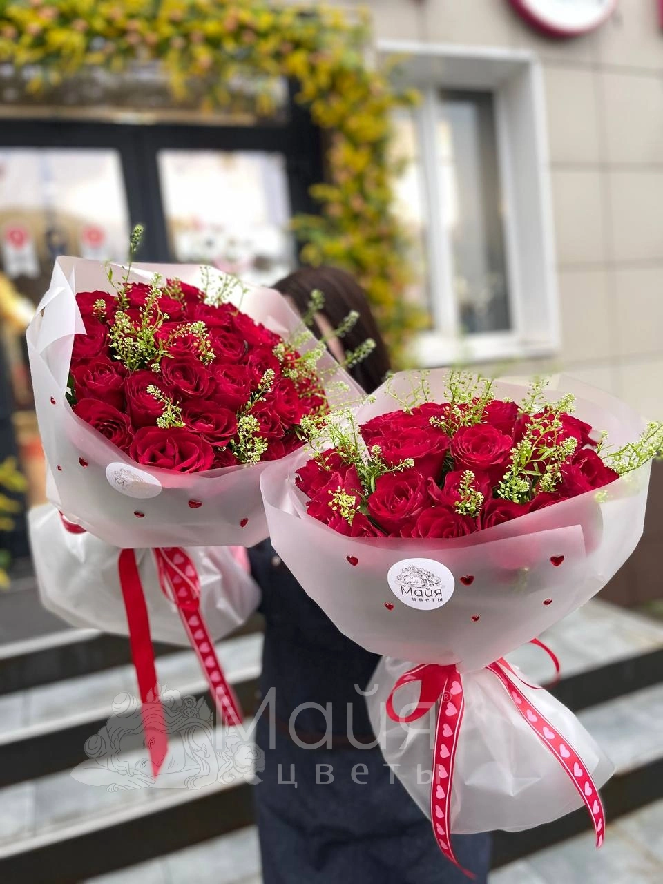 Бережная доставка прямо в руки. Вышлем фото готового букета до доставки, сделаем фото с получателем (если получатель не против).