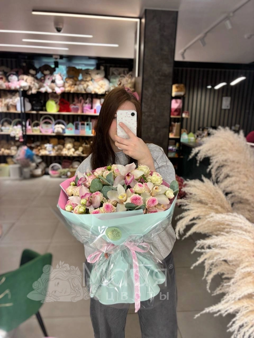Бережная доставка прямо в руки. Вышлем фото готового букета до доставки, сделаем фото с получателем (если получатель не против).