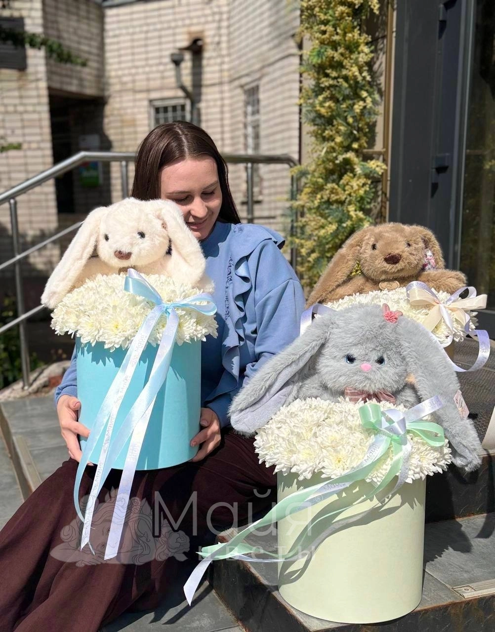 Хризантема кустовая, Лента, Пиафлор, Игрушка заяц 42 см., Короб 26 см