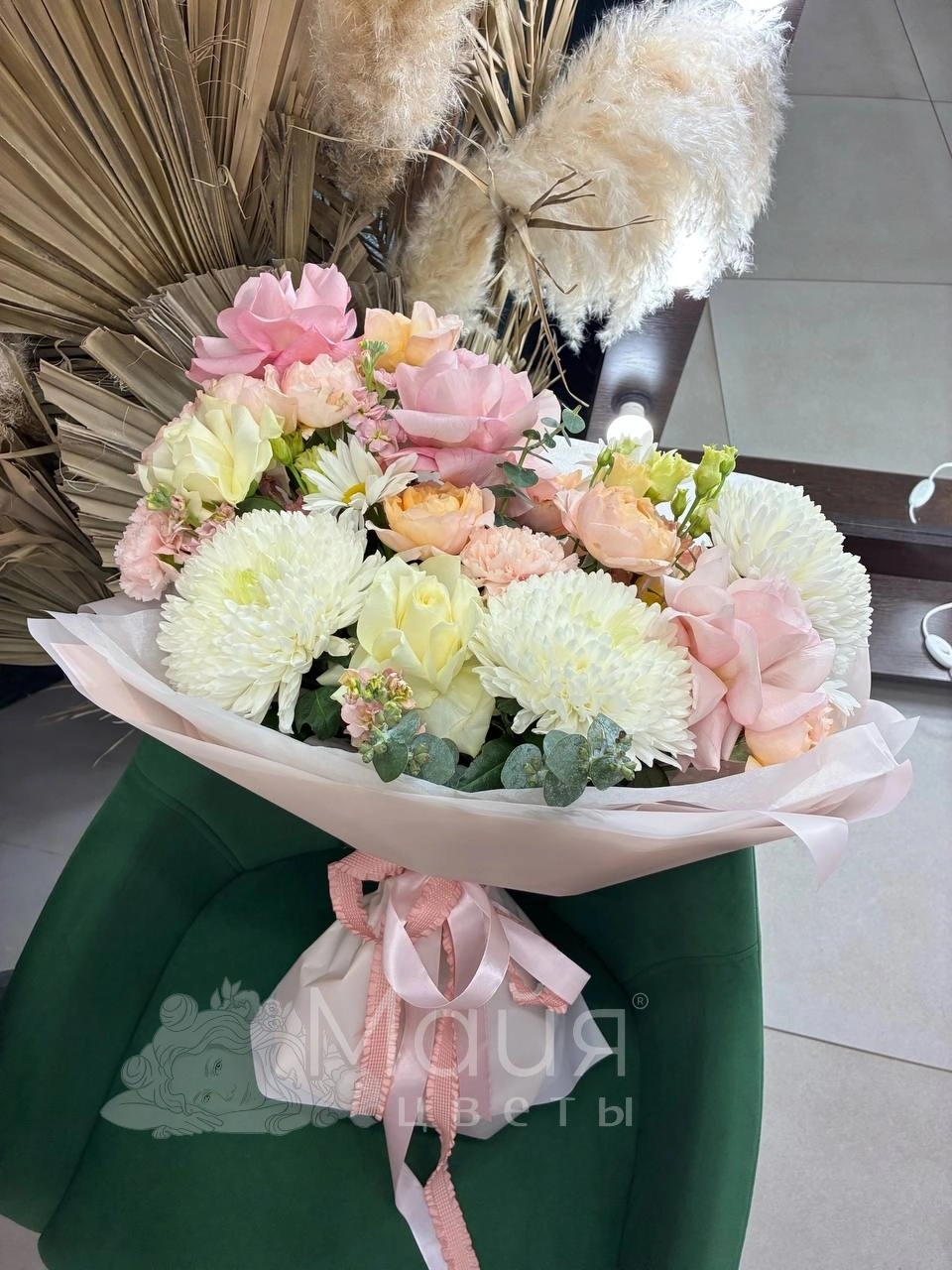 Бережная доставка прямо в руки. Вышлем фото готового букета до доставки, сделаем фото с получателем (если получатель не против).