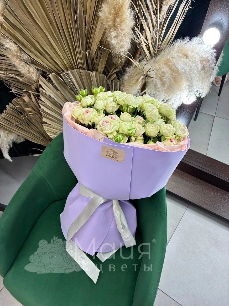 Бережная доставка прямо в руки. Вышлем фото готового букета до доставки, сделаем фото с получателем (если получатель не против).