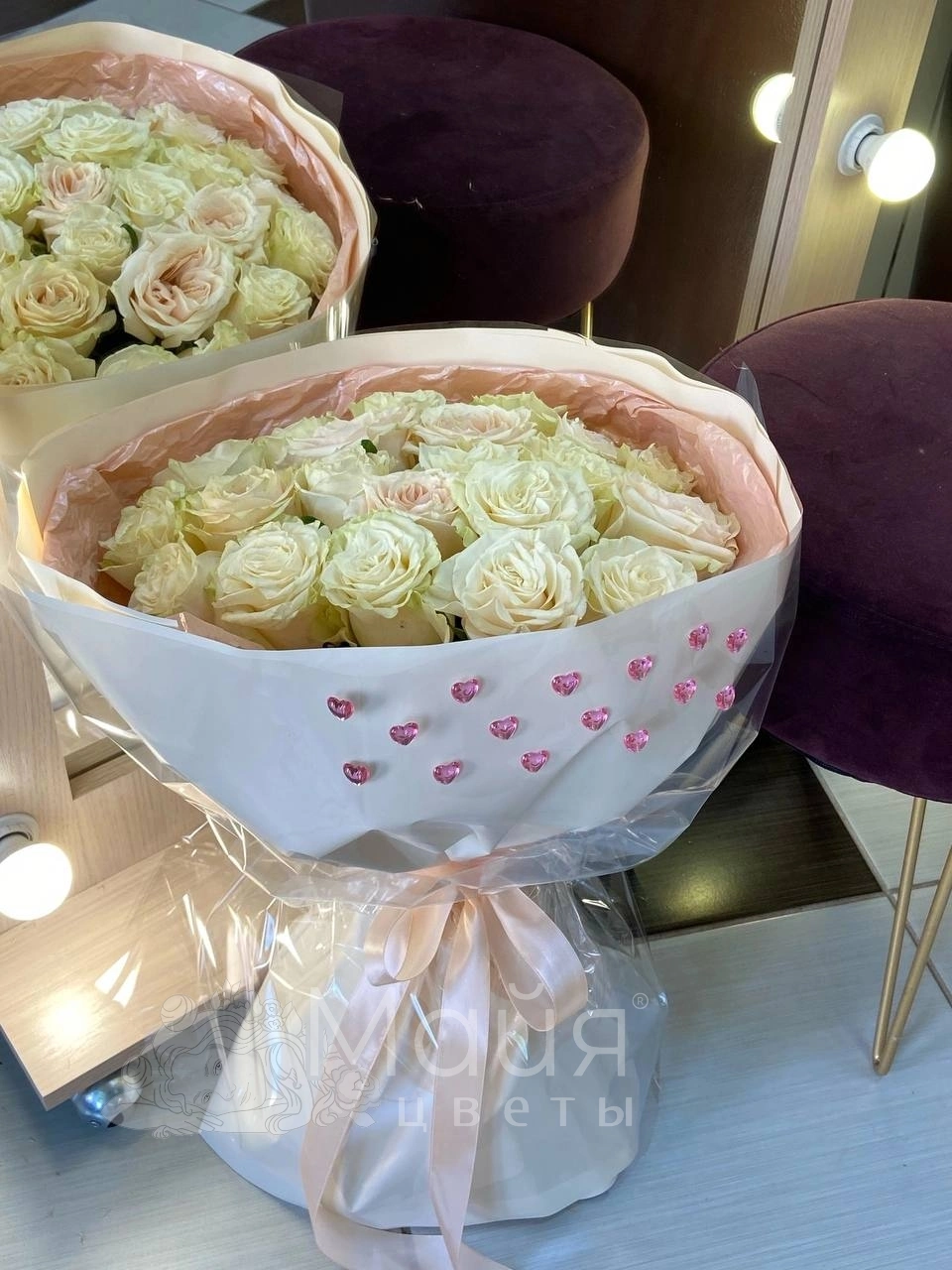 Бережная доставка прямо в руки. Вышлем фото готового букета до доставки, сделаем фото с получателем (если получатель не против).