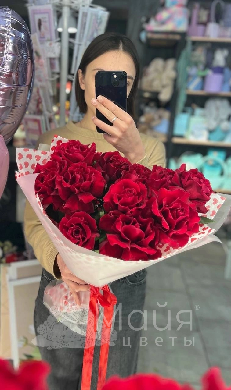 Элегантный букет из бархатных красных роз, словно вырезанных из самой страсти. Этот роскошный подарок станет выражением самых искренних чувств.