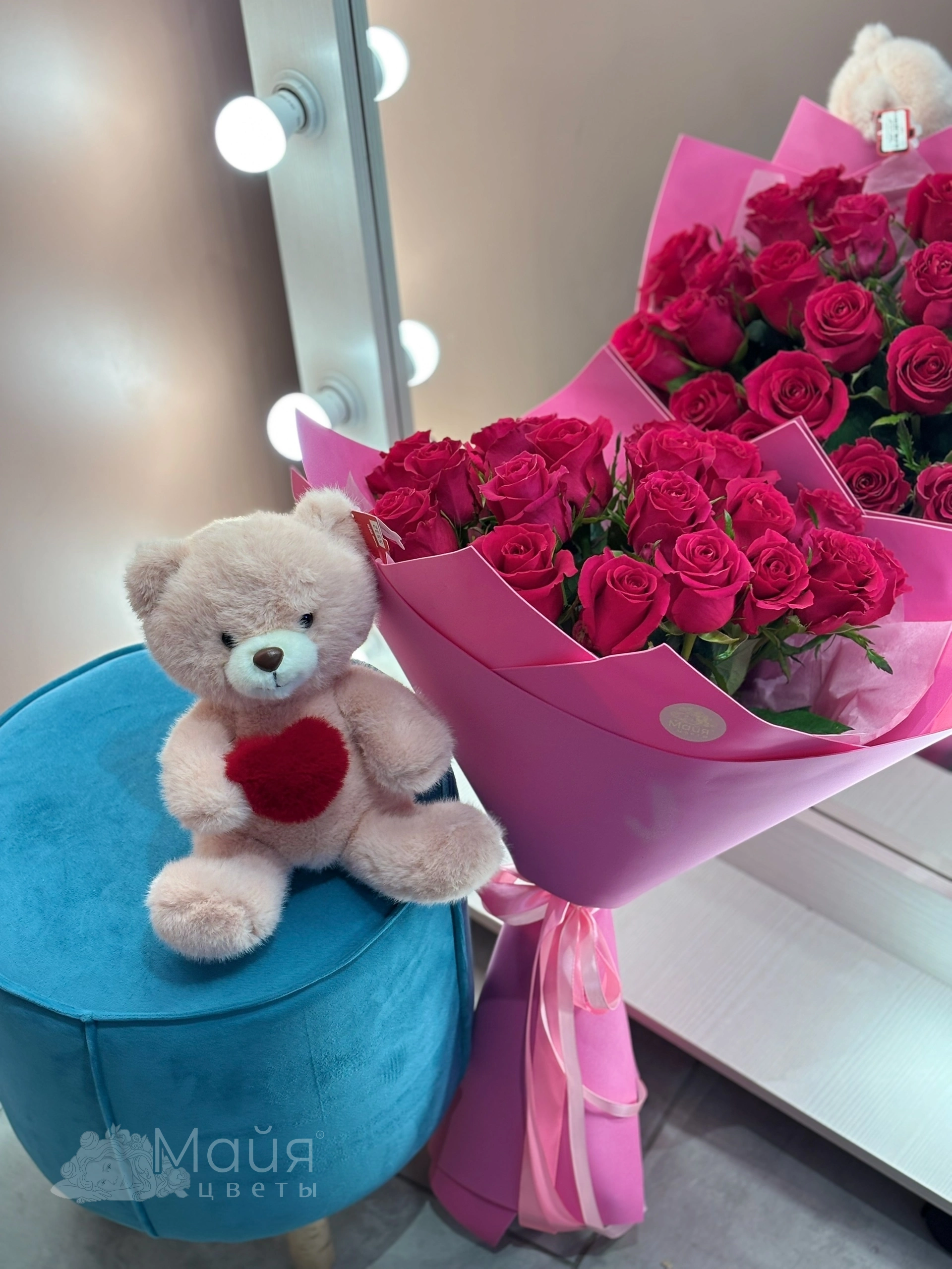 ГлавнаяКаталогРозыСет из 17 Эквадорских роз и плюшевым мишкой