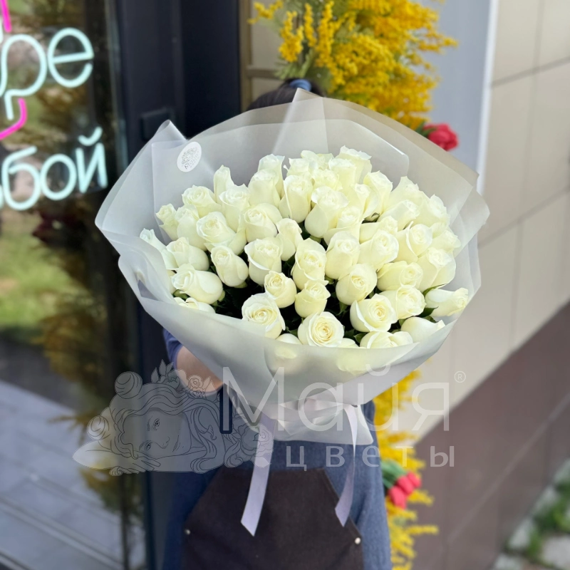 ГлавнаяКаталогРозыБукет из 51 белой Кенийской розы 40 см.