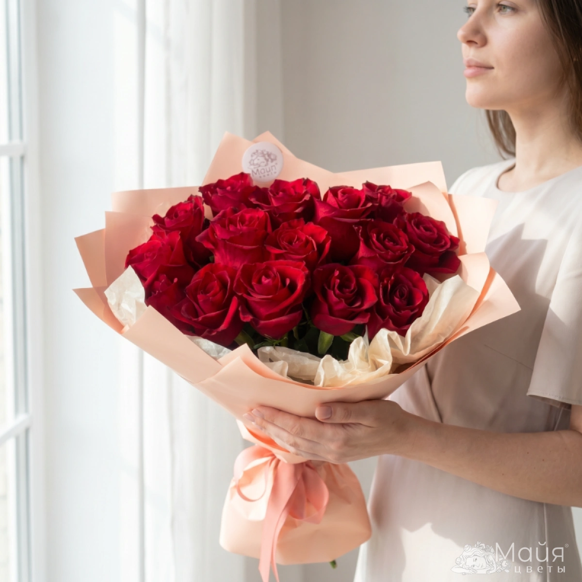Классический букет из благородных красных роз, символизирующий страсть и глубокую привязанность. Идеально подойдет в качестве подарка для выражения самых искренних чувств. Элегантная упаковка подчеркивает красоту каждого цветка.