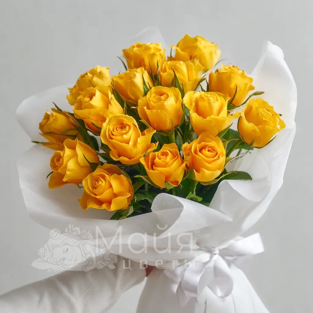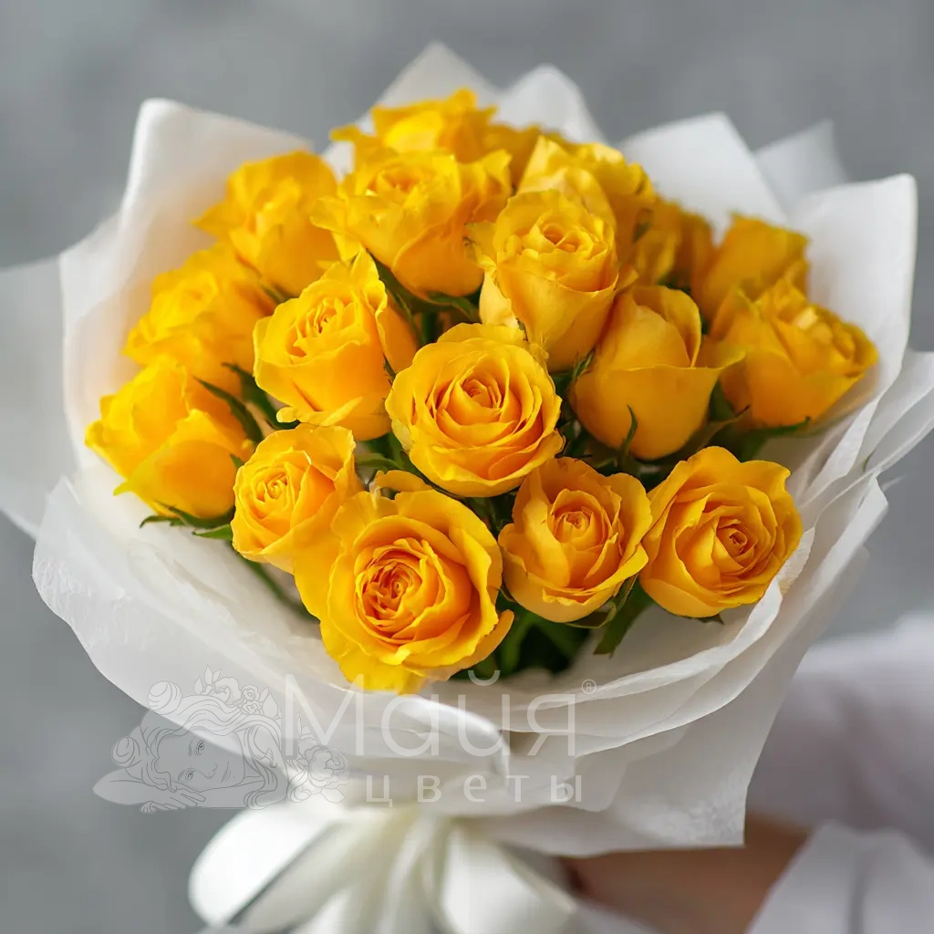 Яркий, солнечный букет из 15 жёлтых роз длиной 40 см. Символ радости, дружбы и позитива. Кенийские розы в этом исполнении станут отличным подарком коллеге, подруге или близкому человеку.